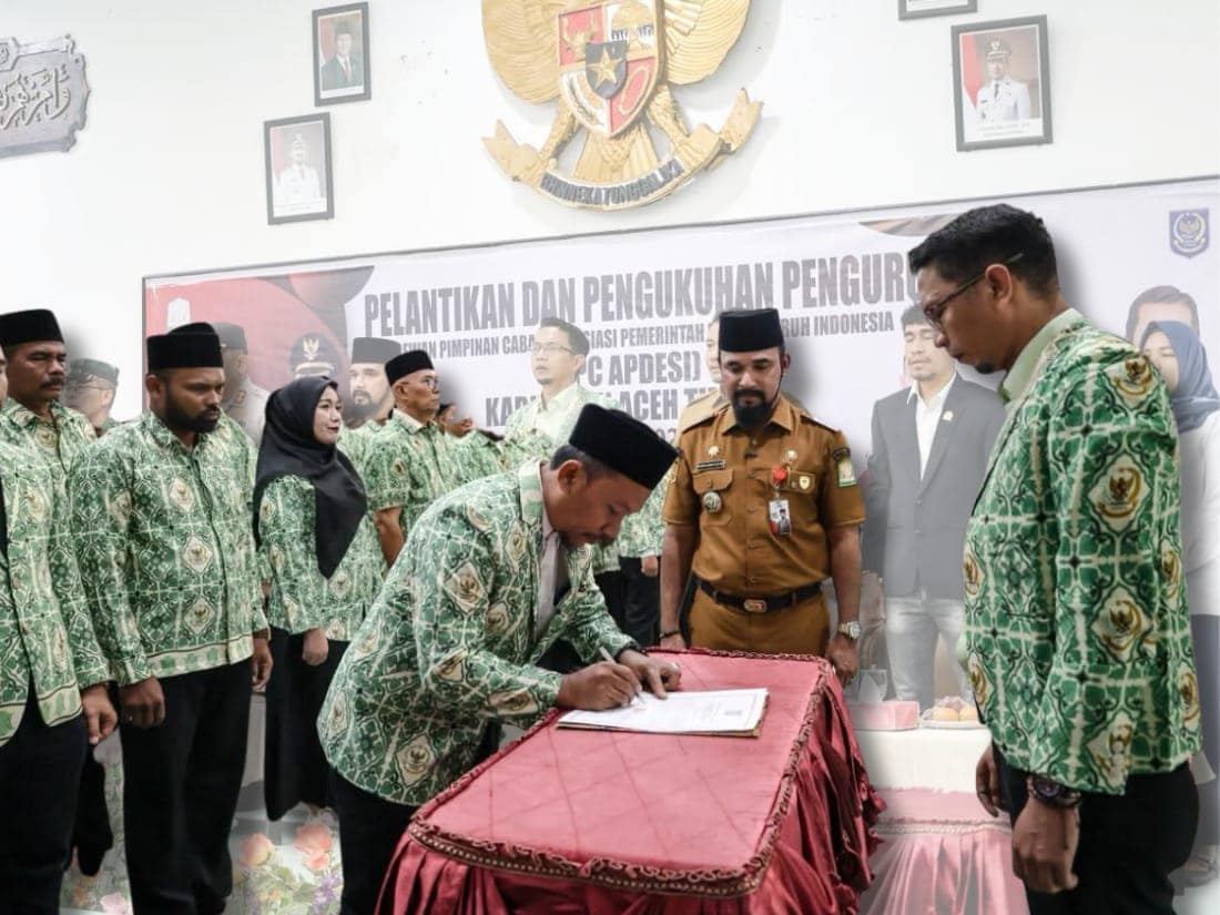 lensaraya.com | ACEH TIMUR — Bupati Aceh Timur, Iskandar Usman Al-Farlaky, melantik Pengurus Dewan Pimpinan Cabang Asosiasi Pemerintahan Desa Seluruh Indonesia (DPC APDESI) Kabupaten Aceh Timur masa bakti 2026–2031. Prosesi pelantikan berlangsung di Aula Serbaguna Pendopo Bupati Aceh Timur, Senin (20/4/2026).