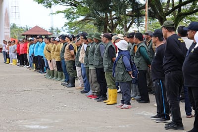 Aceh Timur — Bupati Aceh Timur, Iskandar Usman Al-Farlaky, S.H.I., M.Si., memimpin apel penyambutan rombongan gotong royong massal dari Satuan Kerja Perangkat Aceh (SKPA) Provinsi Aceh. Apel berlangsung di halaman Pendopo Bupati Aceh Timur, Senin (29/12/2025).