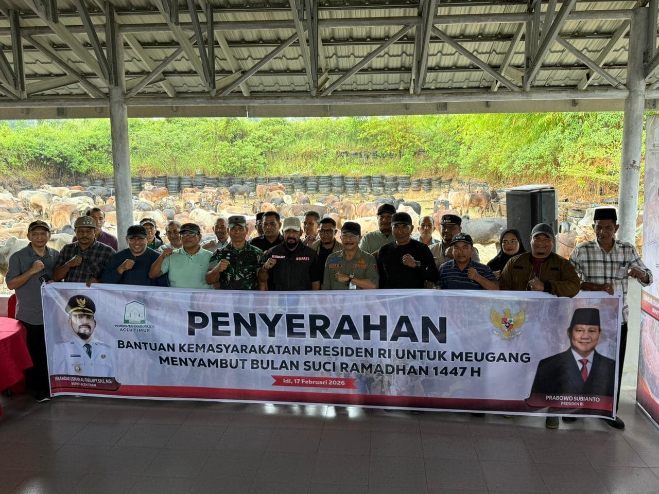 Bupati Al-Farlaky Berserta Forkopimda Aceh Timur Melaksanakan Penyerahan bantuan kemasyarakatan Presiden RI untuk Meugang menyambut Bulan Suci Ramadhan 1447 H