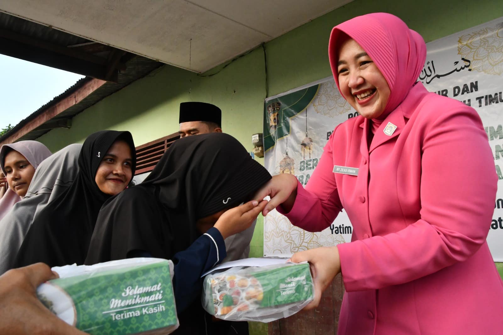 Dalam kegiatan tersebut, Kapolres Aceh Timur AKBP Irwan Kurniadi, S.I.K., didampingi Ketua Bhayangkari Cabang Aceh Timur Ny. Zilka Irwan Kurniadi menyerahkan bantuan secara simbolis kepada pimpinan panti asuhan, Abdul Hakim.
