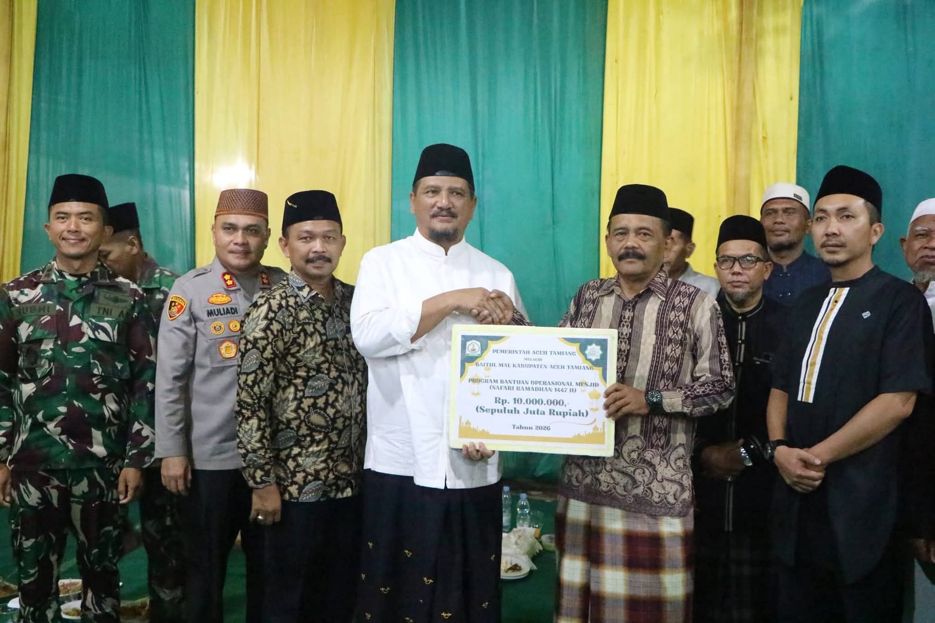 LENSARAYA | Aceh Tamiang – Ketua Dewan Perwakilan Rakyat Kabupaten (DPRK) Aceh Tamiang, Fadlon, S.H., rutin dampingi Bupati Aceh Tamiang, Irjen Pol. Drs. Armia Fahmi, M.H., bersama teman mbongan dalam agenda Safari Ramadhan 1447 Hijriyah (H) ke berbagai kecamatan.