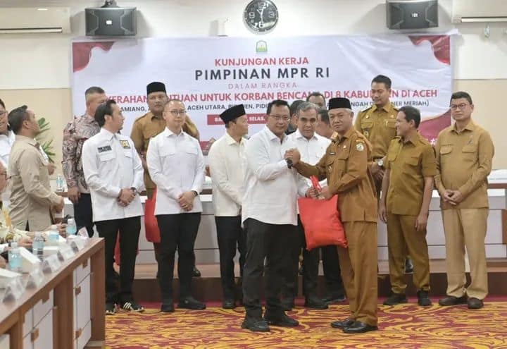LENSARAYA | BENER MERIAH – Pemerintah Kabupaten Bener Meriah menerima bantuan dari MPR RI untuk para korban bencana banjir dan longsor di sejumlah wilayah terdampak, Selasa (10-02-2026) yang berlangsung di Kantor Gubernur Aceh.