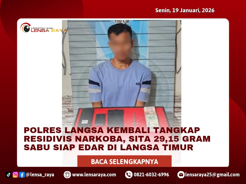LENSARAYA|LANGSA – Unit Opsnal Satuan Reserse Narkoba (Sat Resnarkoba) Polres Langsa berhasil menangkap seorang residivis kasus sabu berinisial T. Irwansyah alias Raja (46) yang kembali terlibat dalam peredaran narkotika di Dusun Melati, Gampong Matang Panyang, Kecamatan Langsa Timur pada Senin, 19 Januari 2026.