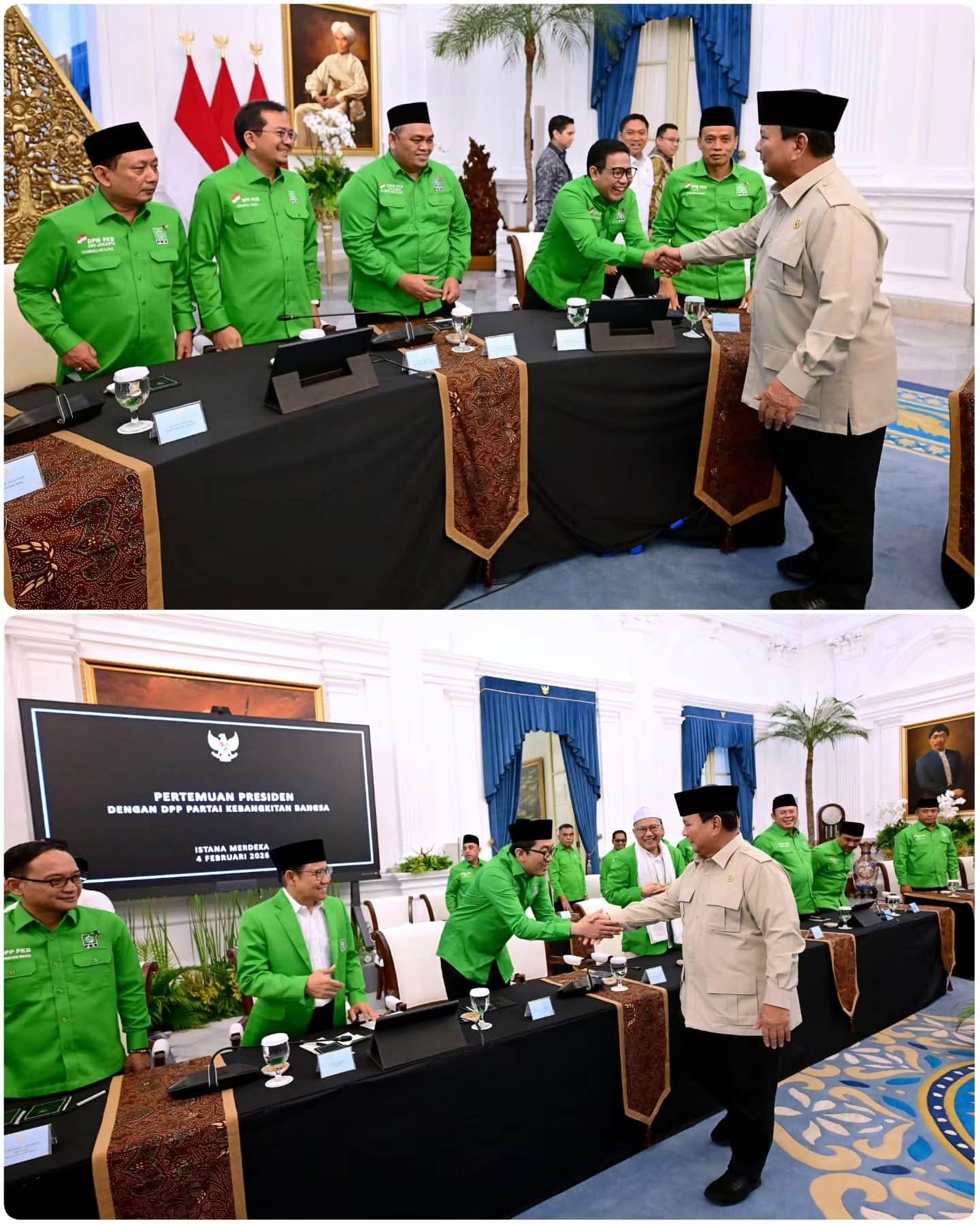 Presiden Prabowo Subianto menerima jajaran DPP Partai Kebangkitan Bangsa (PKB) di Istana Merdeka