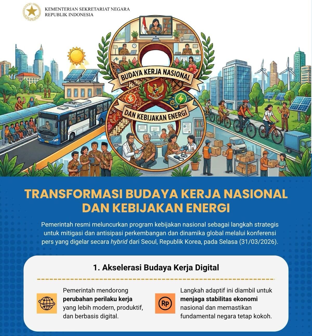 Sebagai langkah Adaptif dan Preventif, Per 1 April 2026 Pemerintah Menetapkan Kebijakan Transformasi Budaya Kerja Nasional