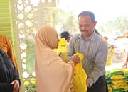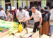 Bantuan diberikan Bupati beserta rombongan kepada masyarakat berdasarkan kepala keluarga (KK) agar dapat diterima secara adil dan merata.